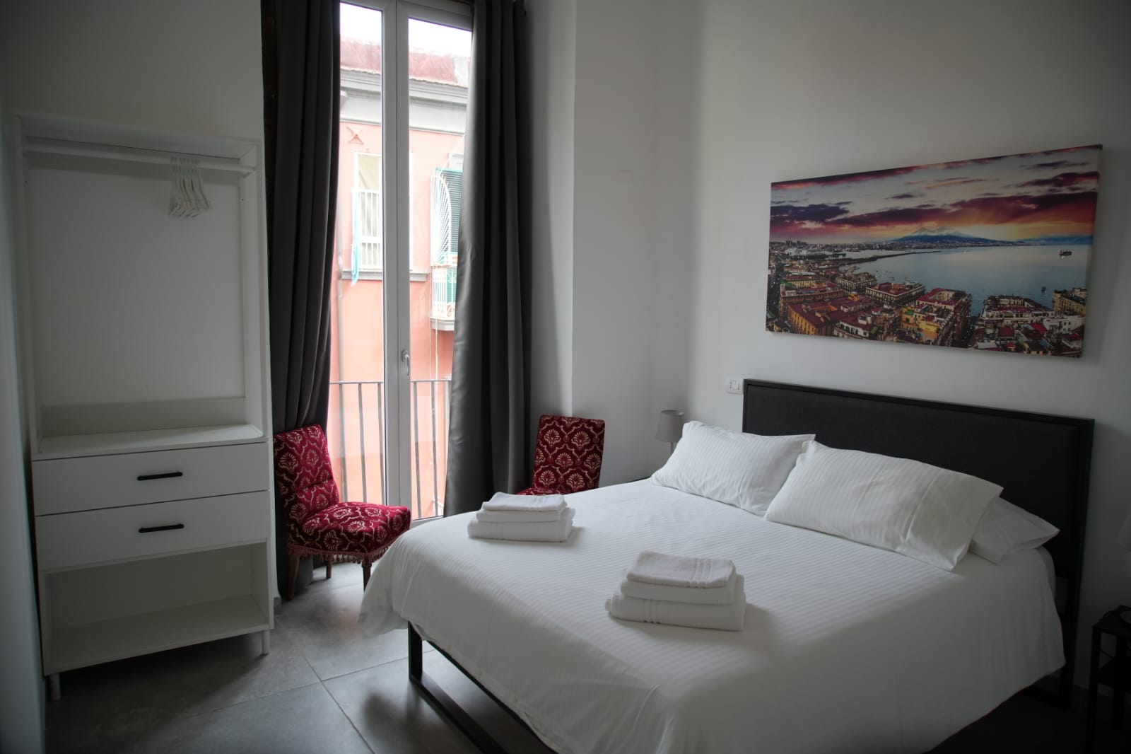 Le Camere Standard con balcone di La Bella Vita Luxury Apartment sono perfette per chi cerca una sistemazione essenziale ma curata nel cuore di Napoli. Pensate per ospitare fino a 2 persone, offrono uno spazio intimo, funzionale e impreziosito da un balcone privato che affaccia sulla città.